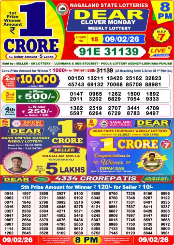 Dear Lottery Result Today 6 PM – 09 February 2026