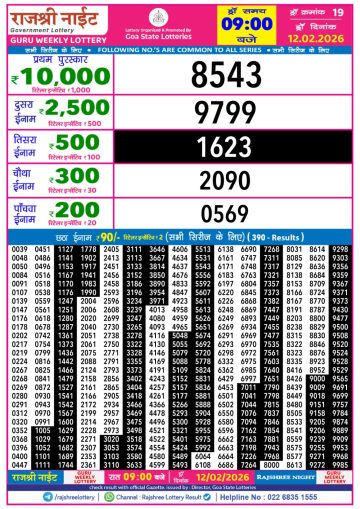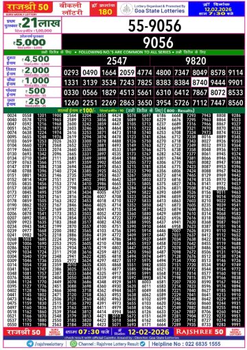 Rajshree 50 Weekly Lottery Result Today 7:30 PM – 12 February 2026