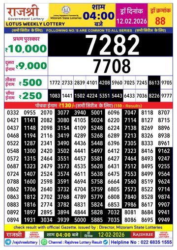 Rajshree Lottery Result Today 4 PM – 12 February 2026