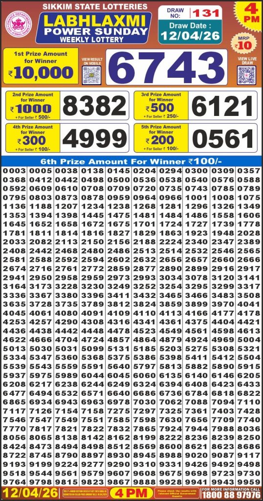 - Dear Lottery Result Today 6 PM Dated 12 April 2026 - Published
