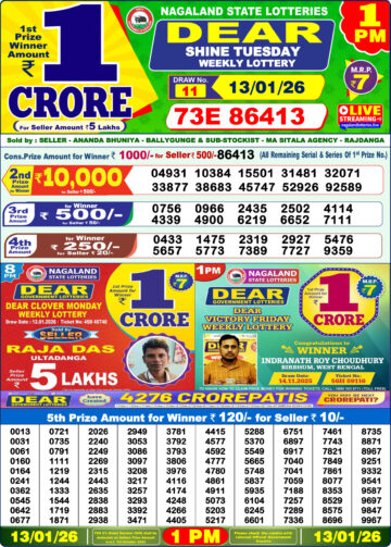 Dear Lottery Result Today 1 PM – 13 January 2026