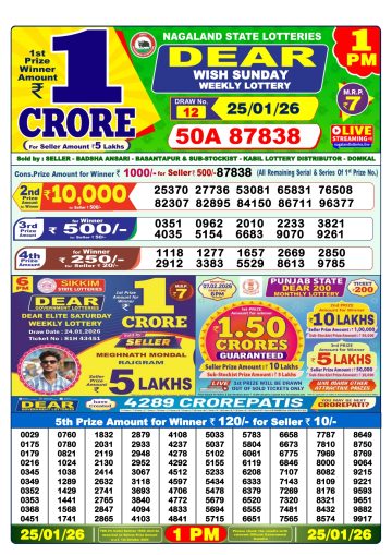 Dear Lottery Result Today 1 PM – 25 January 2026