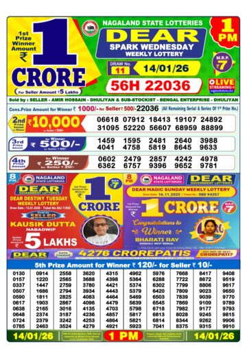 Dear Lottery Result Today 1 PM – 14 January 2026