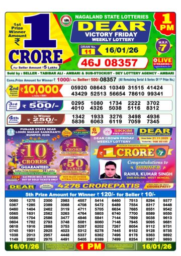 Dear Lottery Result Today 1 PM – 16 January 2026