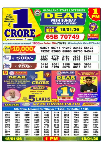 Dear Lottery Result Today 1 PM – 11 January 2026