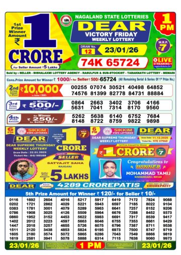 Dear Lottery Result Today 1 PM – 23 January 2026