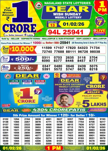 Dear Lottery Result Today 1 PM – 01 February 2026