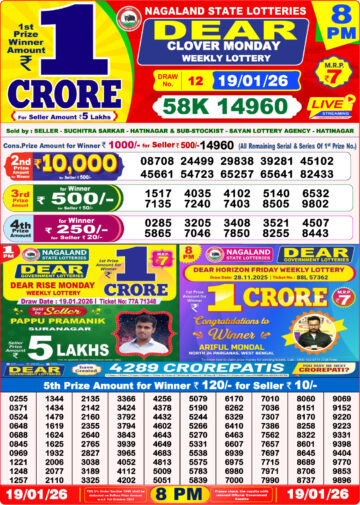 Dear Lottery Result Today 8 PM – 19 January 2026