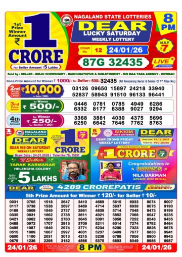 Dear Lottery Result Today 8 PM – 24 January 2026