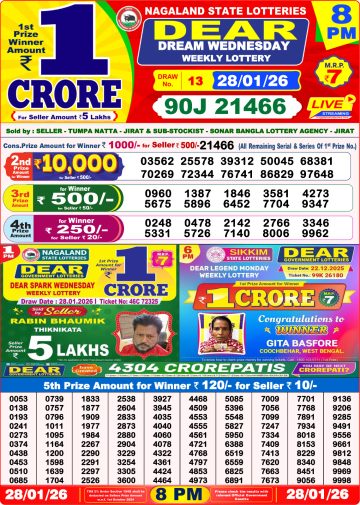 Dear Lottery Result Today 8 PM – 28 January 2026