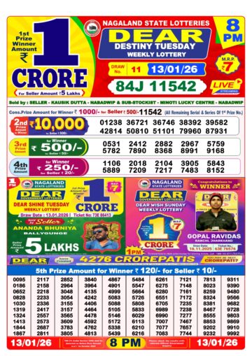 Dear Lottery Result Today 8 PM – 13 January 2026