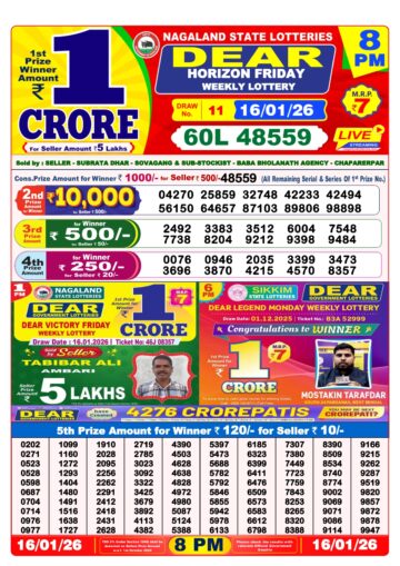 Dear Lottery Result Today 8 PM – 16 January 2026
