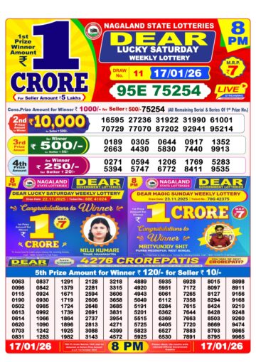 Dear Lottery Result Today 8 PM – 17 January 2026