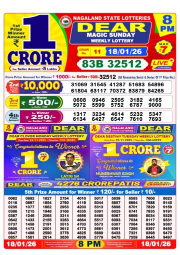 Dear Lottery Result Today 8 PM – 18 January 2026