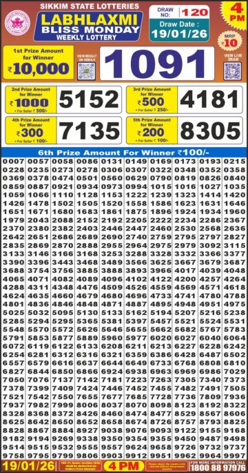 Labh Laxmi Lottery Result Today 4 PM – 19 January 2026