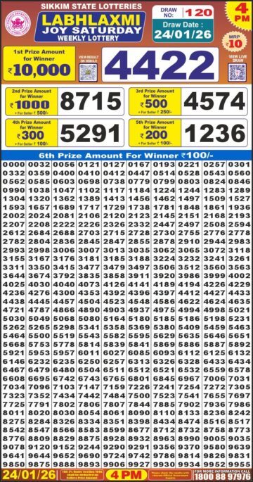 Labh Laxmi Lottery Result Today 4 PM – 24 January 2026