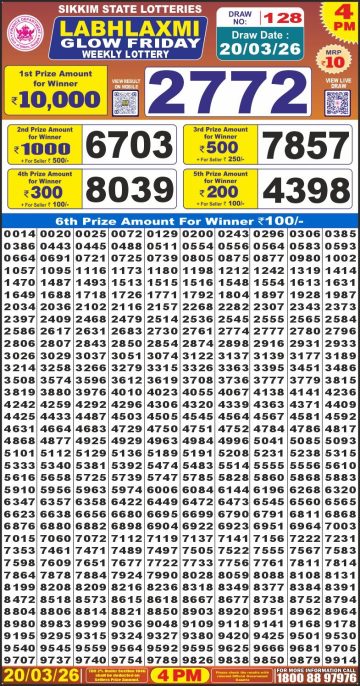 Labh Laxmi Lottery Result 4 PM Dated 20 March 2026