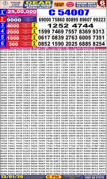 Punjab State Dear 50 Lottery Result Today 6 PM – 13 January 2026