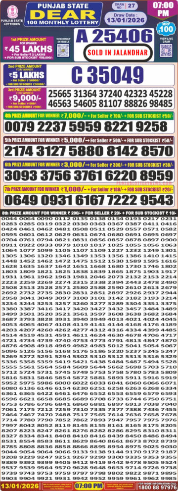 Punjab State Lottery Dear 50 Result 6 PM – 27 January 2026