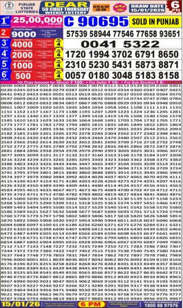 Punjab State Dear 50 Lottery Result Today 6 PM – 25 January 2026