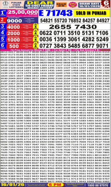 Punjab State Dear 50 Lottery Result Today 6 PM – 16 January 2026
