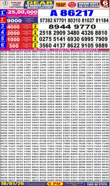 Punjab State Dear 50 Lottery Result Today 6 PM – 18 January 2026