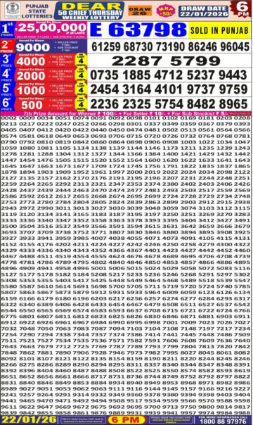 Punjab State Dear 50 Lottery Result Today 6 PM – 22 January 2026