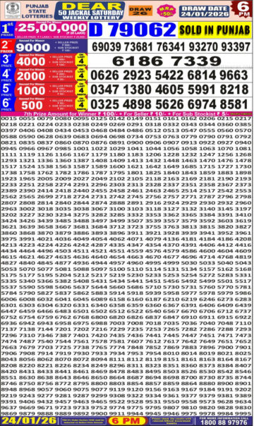 Punjab State Dear 50 Lottery Result Today 6 PM – 24 January 2026