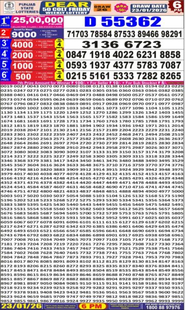 Punjab State Dear 50 Lottery Result Today 6 PM – 23 January 2026