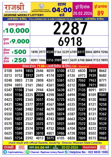 Rajshree Lottery Result Today 4 PM – 20 February 2026