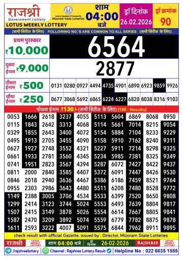Rajshree Lottery Result Today 4 PM – 26 February 2026
