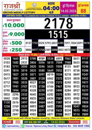 Rajshree Lottery Result Today 4 PM – 14 February 2026