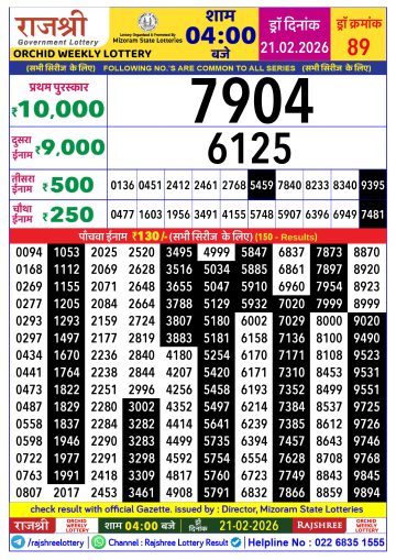 Rajshree Lottery Result Today 4 PM – 21 February 2026