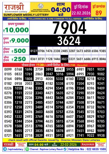 Rajshree Lottery Result Today 4 PM – 22 February 2026