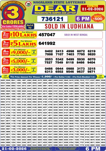 Dear Maha Shivratri Bumper 2026 Lottery Result -21 February 2026