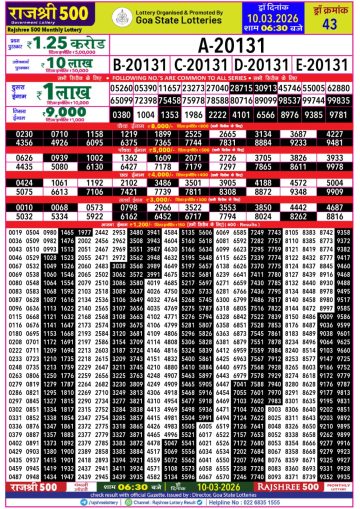 Rajshree 500 Monthly Lottery Result 10 February 2026