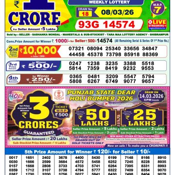 Dear Lottery Result 1 PM Dated 10 March 2026