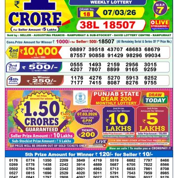 Today's Result is Dear Victory Weekly Lottery Result 1 PM 14/03/26