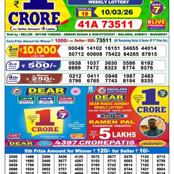 Today's Result is Dear Star Weekly Lottery Result 1 PM 20/03/26