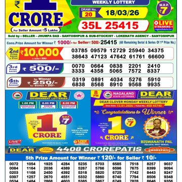 Dear Lottery Result 1 PM Dated 20 March 2026