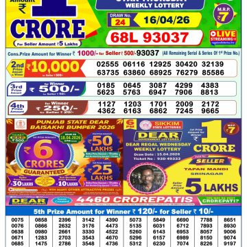 Dear Lottery Result 1 PM Dated 21 April 2026