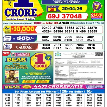 Today's Result is Dear Rise Weekly Lottery Result 1 PM 21/04/26