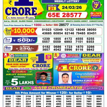Today's Result is Dear Spark Weekly Lottery Result 1 PM 26/03/26