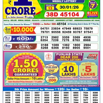 Dear Lottery Result Today 1 PM – 01 February 2026