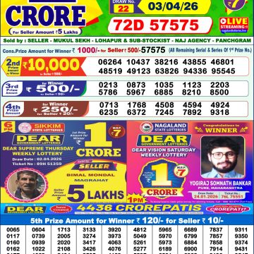 Today's Result is Dear Vision Weekly Lottery Result 1 PM 16/02/26