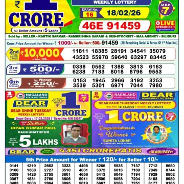 Today's Result is Dear Spark Weekly Lottery Result 1 PM 19/02/26