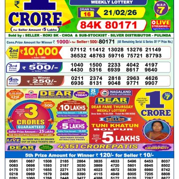 Today's Result is Dear Vision Weekly Lottery Result 1 PM 22/02/26