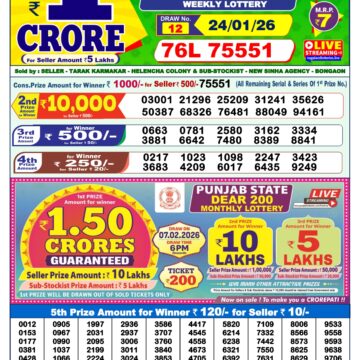 Today's Result is Dear Spark Weekly Lottery Result 1 PM 30/01/26
