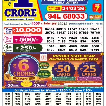 Today's Result is Dear Prestige Weekly Lottery Result 6 PM 01/04/26