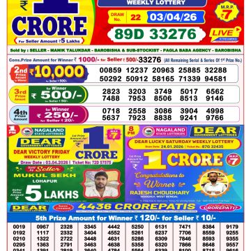 Today's Result is Dear Lucky Weekly Lottery Result 8 PM 17/02/26